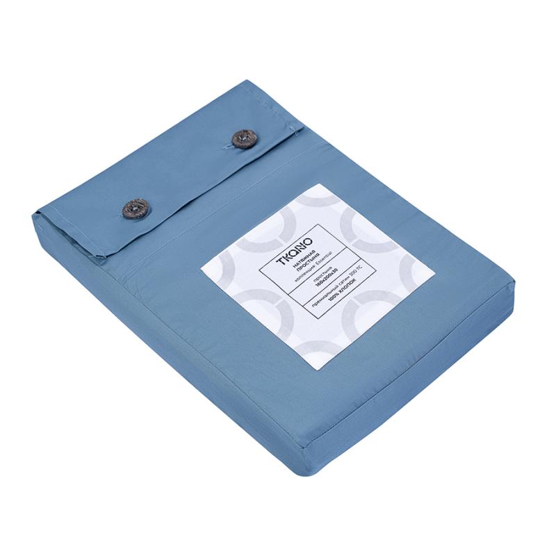 Простыня на резинке из премиального сатина джинсово из коллекции essential, 160х200х30