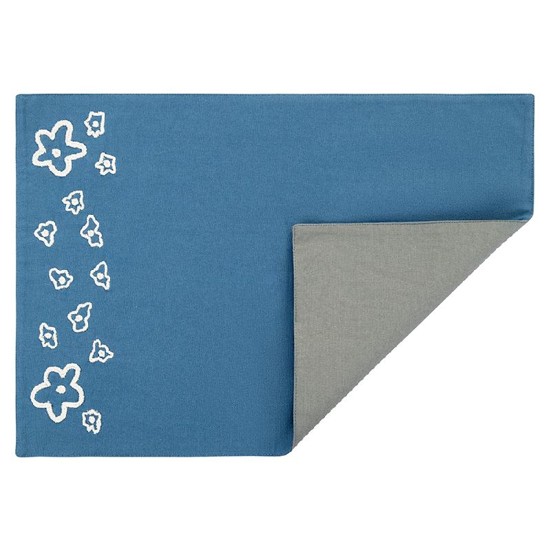 С помощью этой салфетки можно сделать повседневную сервировку чуть более изысканной, а праздничной добавить стильной многослойности. По краю салфетка украшена цветочным паттерном, напоминающим о лете и ярких голубых незабудках в траве — идеально для создания романтичного дизайна. А еще такие салфетки очень практичны — они защищают скатерть и поверхность стола от загрязнений.