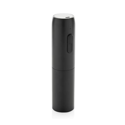 Vino — стильный и удобный штопор в черном матовом корпусе. Оснащен литий-ионным аккумулятором емкостью 500 мА·ч, которого хватает на открытие 20–30 бутылок после полной зарядки. Зарядка занимает 3 часа, зарядный кабель длиной 30 см из черного TPE (термопластичного эластомера) с разъемами USB-A и USB-C входит в комплект. Штопор управляется простыми кнопками «вверх» и «вниз» и оснащен индикаторным светодиодом. Корпус не содержит ПВХ, а упаковка сертифицирована по стандарту FSC®. Входной ток: 5 В / 1 А.
