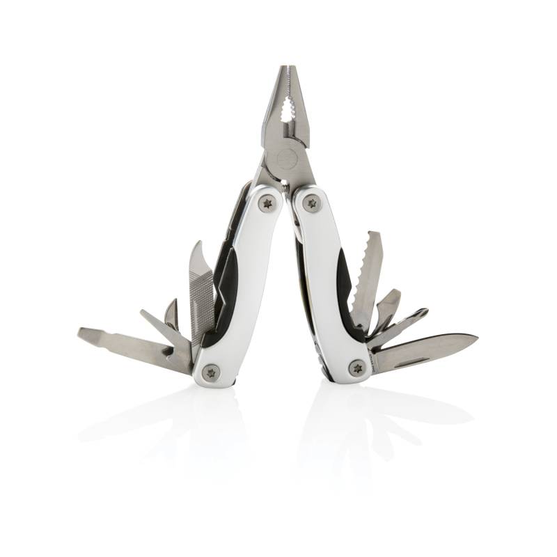 Этот мультитул из нержавеющей стали с ручками из анодированного алюминия совмещает в себе 13 функций. В комплект входит черный чехол.