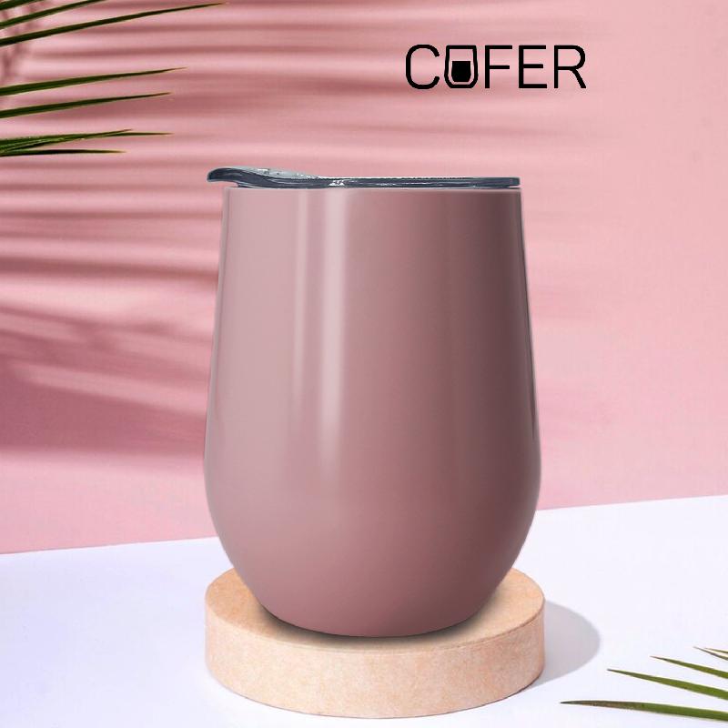 Характерная обтекаемая форма с расширяющейся нижней частью придает коферу оригинальность. Благодаря этой форме, кофер можно использовать для любых напитков: вода, чай, кофе, вино, коктейли - наливайте в кофер все, что захотите, напиток надолго сохранит свою температуру и вкус.