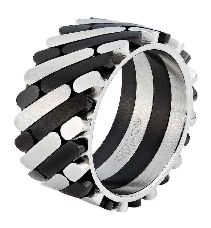 Кольцо ZIPPO, серебристо-чёрное, нержавеющая сталь, 1,2x0,25 см, диаметр 21 мм
