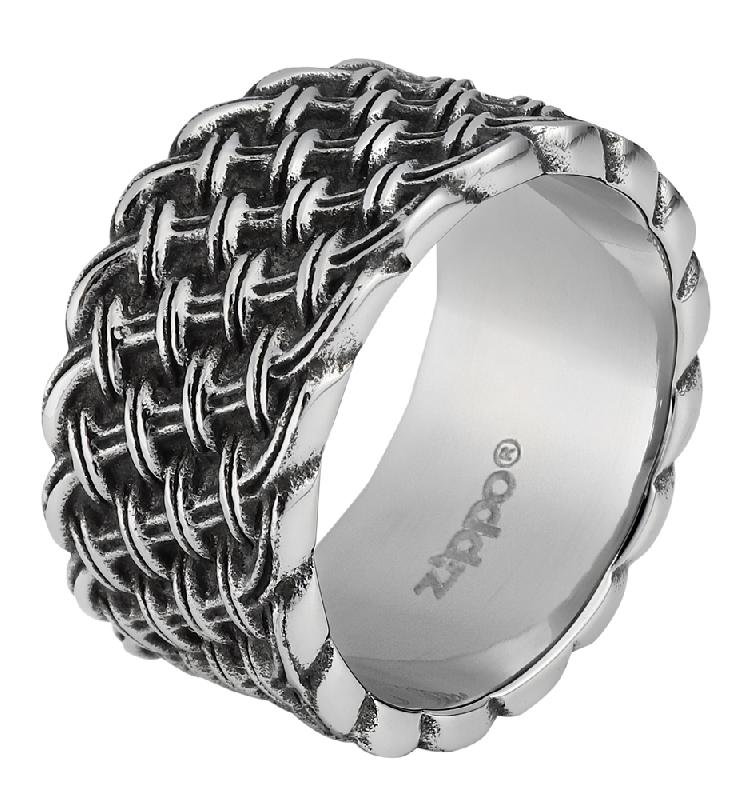 Кольцо ZIPPO, серебристое, с плетёным орнаментом, нержавеющая сталь, диаметр 21,7 мм