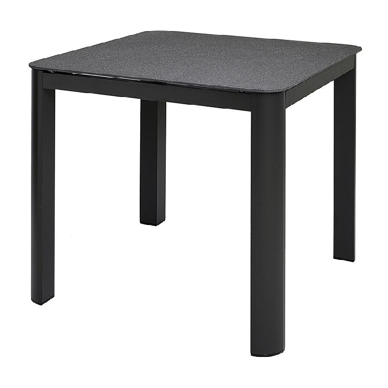 Материал: алюминий, закаленное кварцевое стекло. Размеры: 80х80х75 см. Расстояние между ножками: 76 см. Цвет: темно-серый.