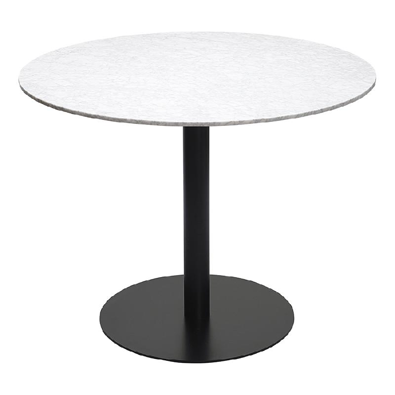 Материалы: столешница – натуральный мрамор, основание – нержавеющая сталь. Размеры: 100х100х75 см. Цвет: белый мрамор/черный.
