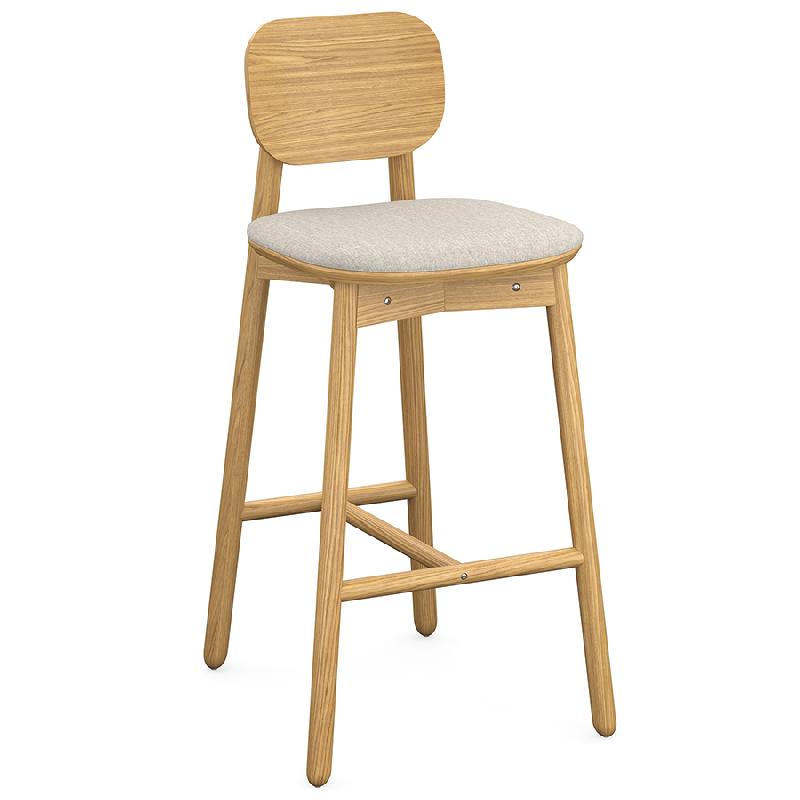 Cтул барный изготовлен из массива ясеня – твердой породы древесины, плотность и прочность которой не уступает характеристикам дуба. Благодаря прекрасным эксплуатационным свойствам материала готовое изделие не подвержено преждевременному износу, деформации, имеет высокие показатели практичности и экологической безопасности. Сиденье с мягкой накладкой из пенополиуретана обеспечивает комфортную посадку. Обивка из рогожки обладает износостойкостью, придает модели современный вид. Наличие специальной перекладины позволяет удобно расположить ноги. Деревянная мебель с лаконичным дизайном всегда актуальна, отлично сочетается с любыми стилевыми решениями, что является ее неоспоримым преимуществом.