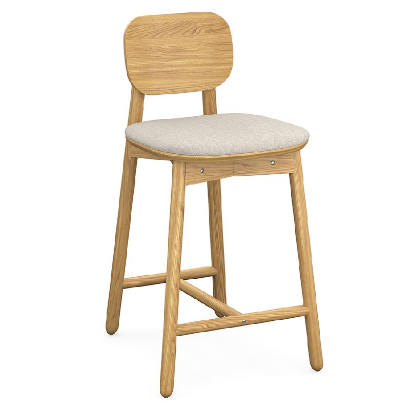 Cтул полубарный изготовлен из массива ясеня – твердой породы древесины, плотность и прочность которой не уступает характеристикам дуба. Благодаря прекрасным эксплуатационным свойствам материала готовое изделие не подвержено преждевременному износу, деформации, имеет высокие показатели практичности и экологической безопасности. Сиденье с мягкой накладкой из пенополиуретана обеспечивает комфортную посадку. Обивка из рогожки обладает износостойкостью, придает модели современный вид. Наличие специальной перекладины позволяет удобно расположить ноги. Деревянная мебель с лаконичным дизайном всегда актуальна, отлично сочетается с любыми стилевыми решениями, что является ее неоспоримым преимуществом.