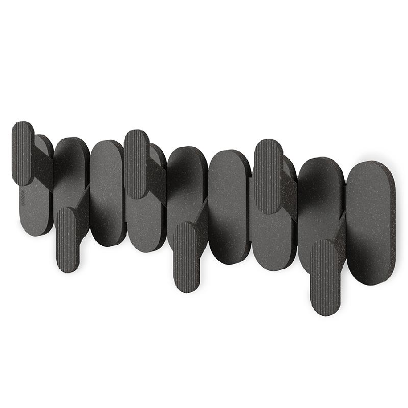 Настенная вешалка Tempo органично сочетает в себе актуальный дизайн и функциональность. Шесть крючков, расположенных в шахматном порядке, создают на стене выразительный графический акцент. Изделие изготовлено из переработанного пластика с добавлением древесного волокна. Прочная конструкция выдерживает значительные нагрузки.