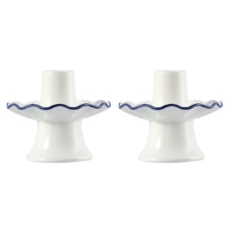 - Акцентная голубая кайма придает белоснежным подсвечникам особую элегантность.