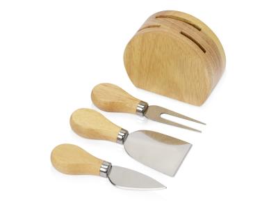Набор состоит из ножей для сыра, подставки и удобной крафт-коробки. Кухонные инструменты выполнены из надежного каучукового дерева. Оно устойчиво к воздействию влаги, перепадам температуры и большим нагрузкам. Приборы устанавливаются в удобную деревянную подставку, где их можно хранить после использования. В комплект входят: