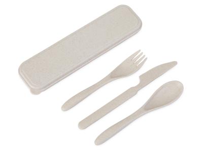 Набор столовых приборов Ron состоит из вилки, ножа и ложки. Они хранятся в удобном боксе, выполненном в едином стиле и цвете. Все приборы изготовлены на 50 % из бамбукового волокна и на 50 % - из полипропилена. Этот компактный и стильный набор удобно брать с собой на работу, в путешествие или на пикник.