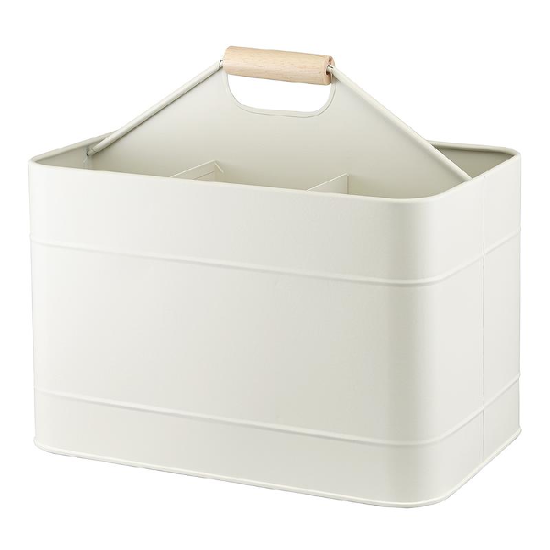 Материалы: углеродистая сталь, бамбук. Размеры: 32,3х21х29,5 см. Большой отсек: 31,7х9,7х29,5 см. Малые отсеки: 10,6х10,7х29,5 см. Цвет: молочный.