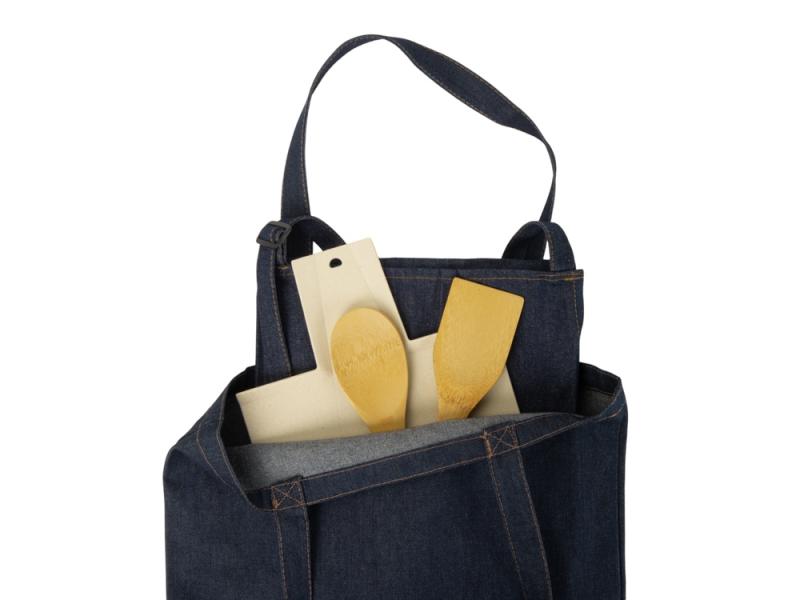Стильные джинсовые фартук и шоппер подойдут не только женщинам, но и мужчинам; джинсовая ткань в оттенке индиго — необычное для рынка мерча и вместе с тем универсальное решение, которое органично впишется в любой кэжуал-образ. Большое поле для нанесения позволит дать волю фантазии и нанести оригинальный крупный принт.