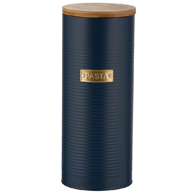 Банка для пасты из коллекции Otto – удобное решение для хранения сыпучих продуктов и стильный элемент кухонного интерьера. Эргономичный контейнер выполнен из прочной, устойчивой к коррозии и деформации углеродистой стали. Плотно прилегающая бамбуковая крышка с силиконовым уплотнителем защищает содержимое банки от заветривания и отсыревания. Рельефная поверхность и красивое сочетание золотистого декора с матовым покрытием насыщенного синего цвета делает дизайн интересным. Такая посуда отлично вписывается в интерьер, оформленный в классическом и современном стиле.