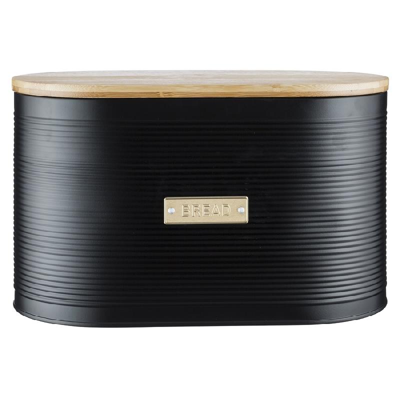 Стильная хлебница Otto на долгое время сохранит любимую выпечку свежей. Для украшения модели дизайнеры используют золотистый декор, который безупречно сочетается с матовым покрытием черного цвета. За счет этого хлебница идеально впишется в классический или современный интерьер кухни. Корпус изделия выполнен из прочной углеродистой стали, которая отличается прочностью и износостойкостью. Хлебница дополнена бамбуковой крышкой, которая при необходимости может служить разделочной доской.