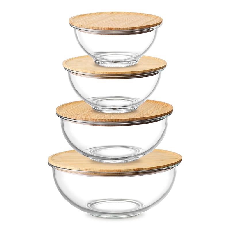 Набор из 4х стеклянных мисок eco store с крышками из бамбука
