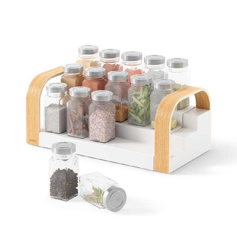Полка Bellwood – удобный способ хранить баночки со специями, чтобы они всегда были под рукой. Она не требует сборки и может использоваться сразу, как только вы достанете ее из коробки. Трехъярусная раздвижная конструкция делает полку вместительной и позволяет удобно расположить ее в шкафу или на столешнице. Изготовленное из дерева и высокопрочного переработанного АБС-пластика, изделие прослужит долгое время и сохранит свой первозданный вид.