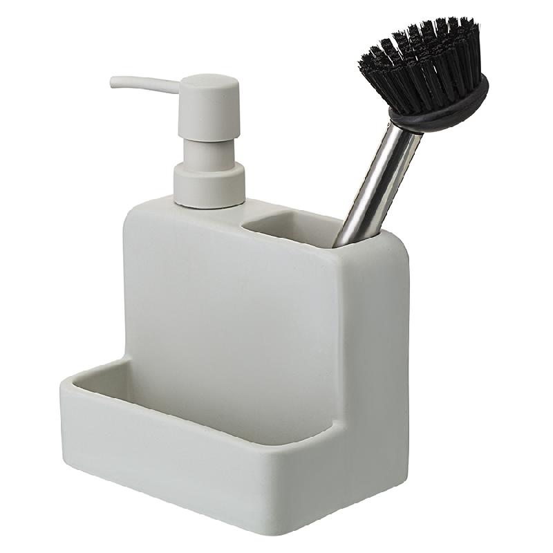 Материалы: диспенсер – керамика, ABS-пластик, полипропилен; щетка – нержавеющая сталь 201, полипропилен. Размеры: 15х9,5х17,5 см. Объем: 280 мл. Цвет: светло-серый.