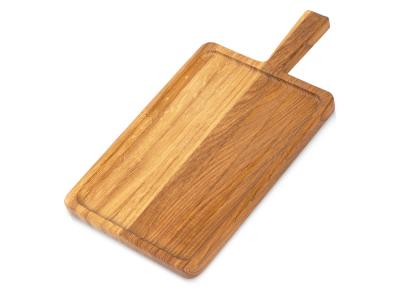 Доска обладает углублением и небольшими бортиками для стока жидкости из нарезаемых продуктов. Благодаря ручке её удобно использовать в качестве подноса или блюда.