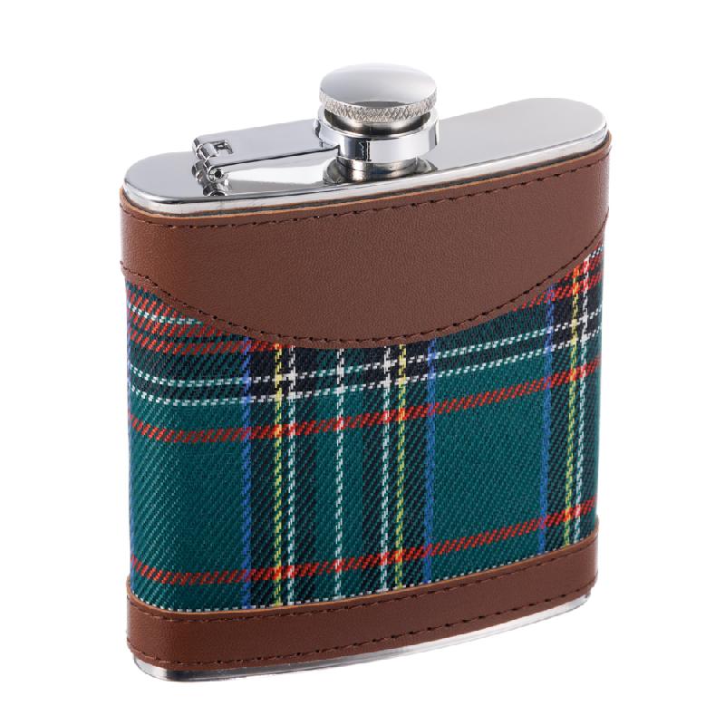 Фляга S.Quire 0,18 л, сталь+искусственная кожа, коричневая с шотландской клеткой