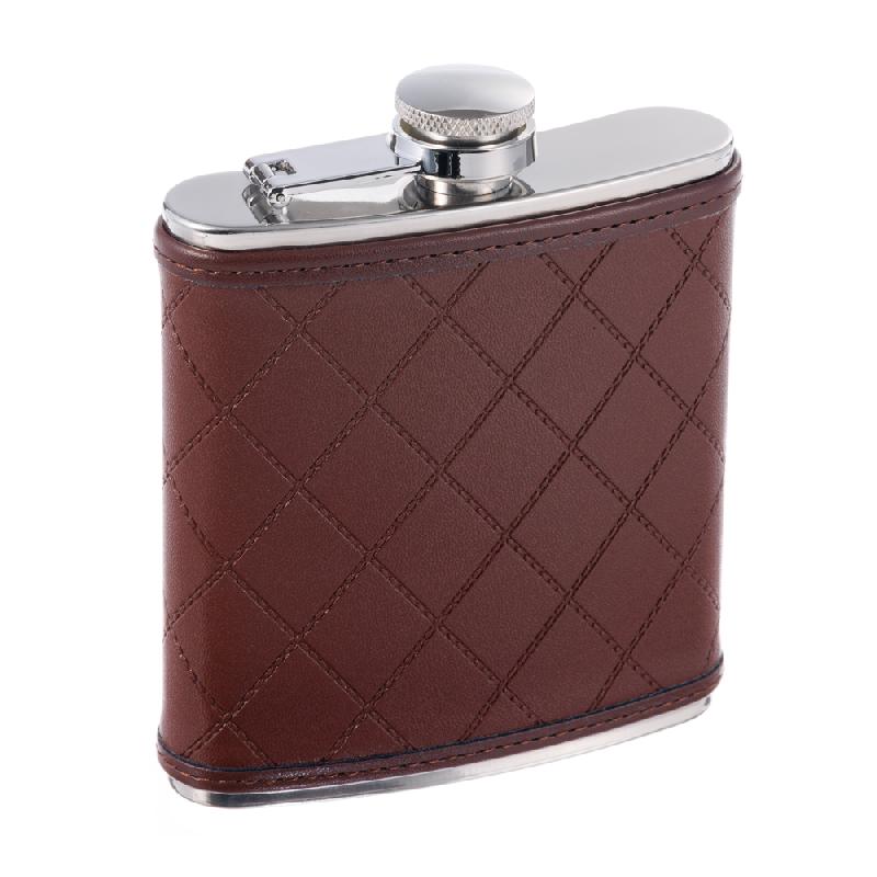 Фляга S.Quire 0,18 л, сталь+искусственная кожа, серая