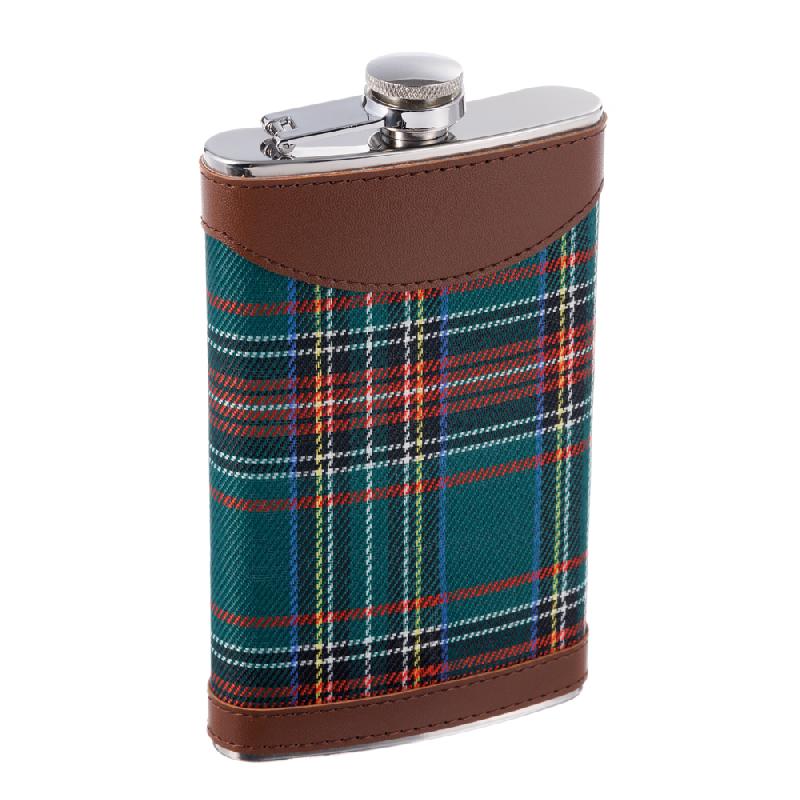 Фляга S.Quire 0,27 л, сталь+искусственная кожа, коричневая с шотландской клеткой