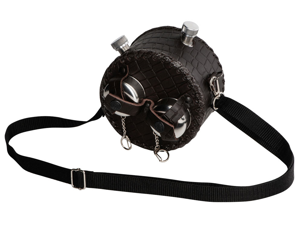 Фляга 1,5л в оплетке из натуральной кожи с нанесением рисунка методом художественного выжигания.