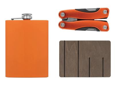 В набор входят мультиинструмент и фляжка, которые пригодятся как в городе, так и на природе.