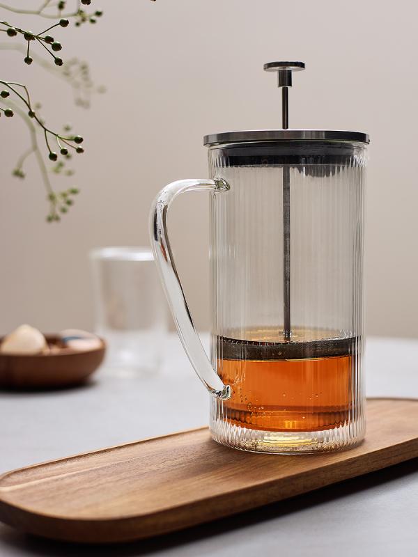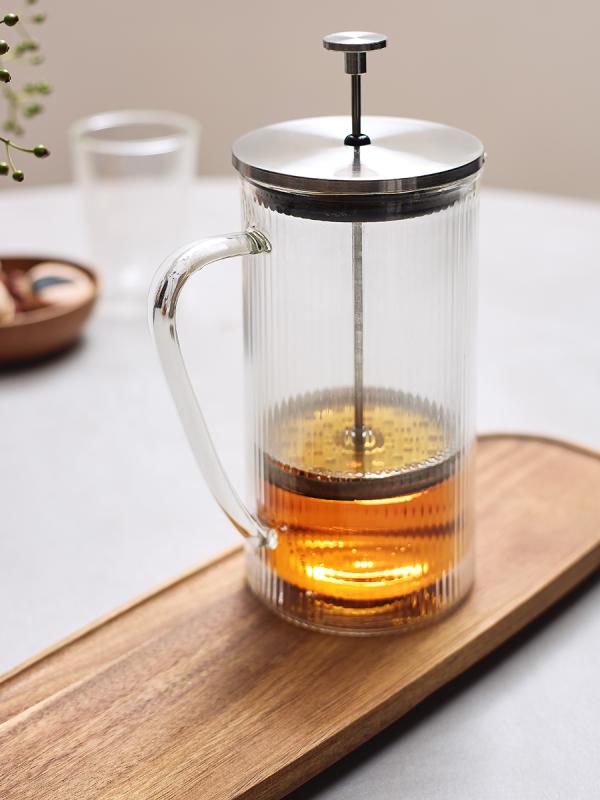 - Пресс из нержавеющей стали дает возможность получить чистый напиток, исключая попадание в чашку чайных листьев или кофейной гущи.