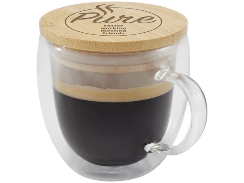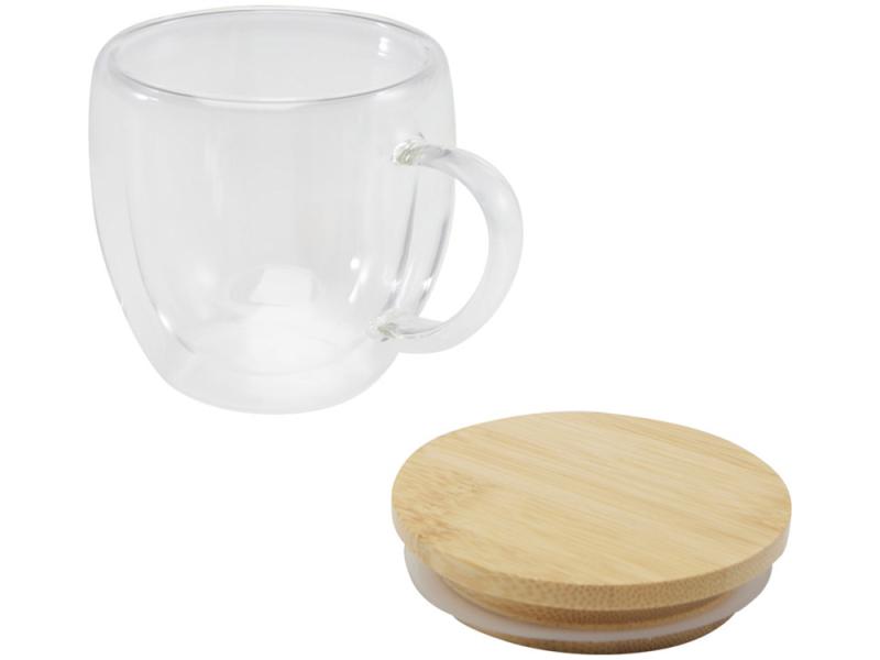 Стеклянная кружка Lenora объёмом 250 мл с двойными стенками и стильной бамбуковой крышкой. Она дольше сохраняет температуру напитка, помогает избежать проливов и бережно удерживает его аромат. Идеальный выбор для уютного чаепития или кофе-паузы.