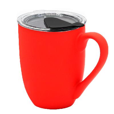 Кружка с крышкой Velvet Duo, софт-тач, красная/чёрная