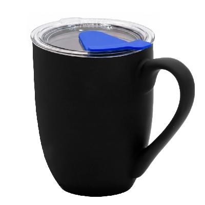 Кружка с крышкой Velvet Duo, софт-тач, чёрная/синяя