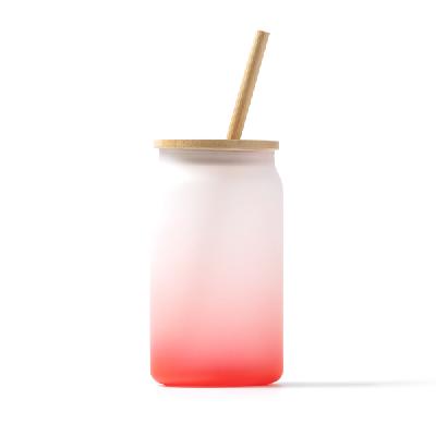 Цветное боросиликатное стекло с эффектом льда. Бамбуковая крышка и соломинка. Объем 350 мл. Идеальная чашка с градиентным цветовым дизайном, идеально подходящая для вашего бизнеса.