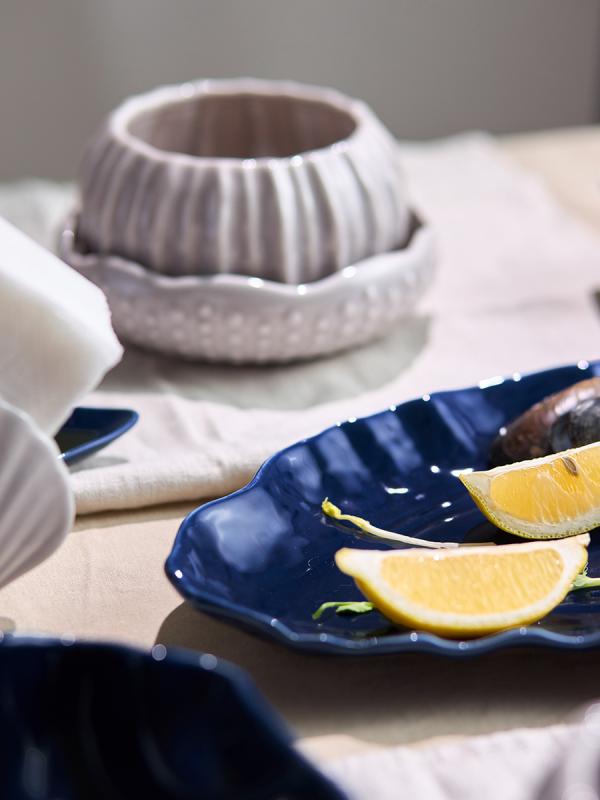 Блюдо сервировочное Clams синего цвета из коллекции Sea treasures украсит ваш стол, добавив в его оформление нотки морской свежести.