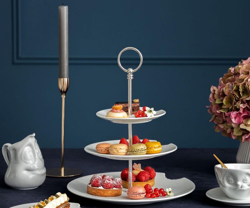 Этажерка Food-Tempel отлично подходит для подачи сладостей и фруктов. На трех ярусах достаточно места, чтобы разложить много лакомств для торжественного застолья или угощение на каждый день. Посуда с таким дизайном обязательно поднимет настроение и органично впишется практически в любую в сервировку стола.