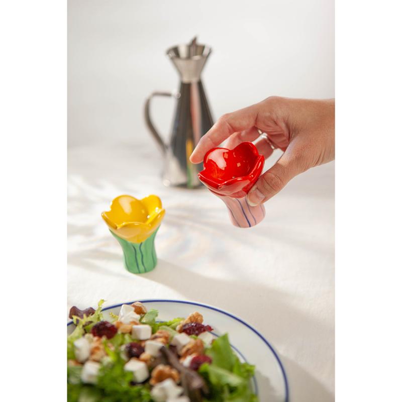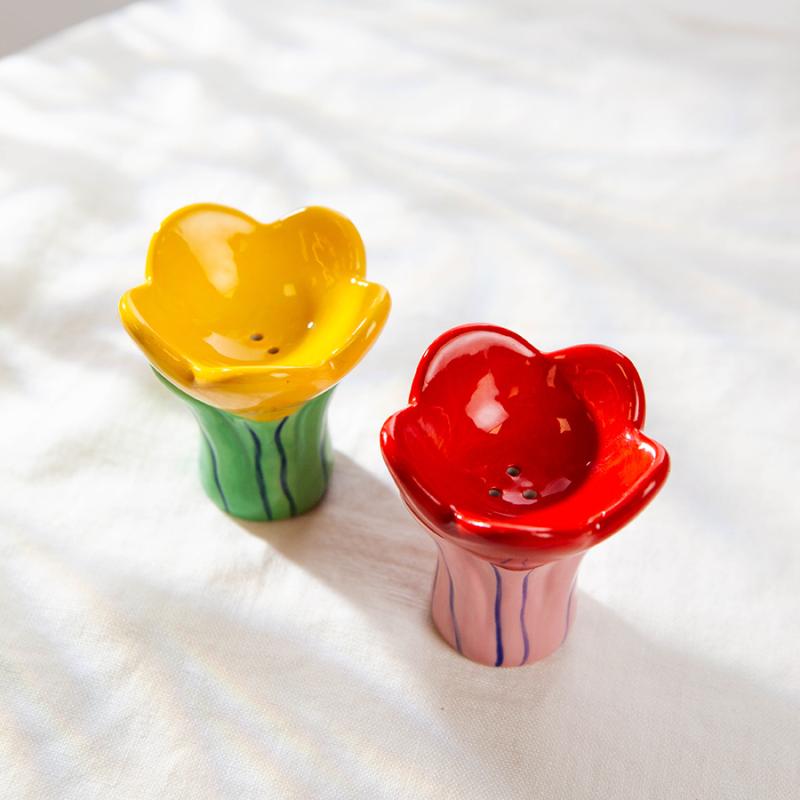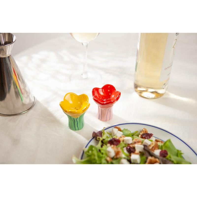 Набор из солонки и перечницы Bloom сделает вашу кухню яркой и необычной, непременно подарит радостное настроение. Оригинальный дизайн обеспечивает изделиям привлекательный внешний вид, а прочная керамика – долгий срок службы. Аксессуар идеально подойдет как для сервировки праздничного стола, так и для ежедневного использования.