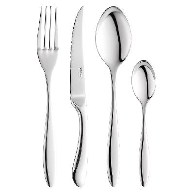Отличное качество материалов, элегантный дизайн и практичность – все это делает столовые приборы Dinelux от дизайнерского бренда Liberty Jones прекрасным дополнением любой сервировки. Набор состоит из 16 предметов и включает все необходимое для обслуживания 4-х человек.
