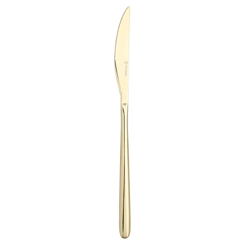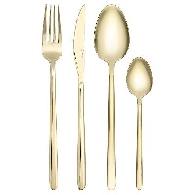- Столовые приборы золотистого цвета с зеркальной полировкой идеально вписываются в классическую и традиционную сервировку, прекрасно сочетаясь с белоснежной скатертью и фарфоровой посудой. В современных решениях они могут служить ярким акцентом на фоне простых и лаконичных элементов.