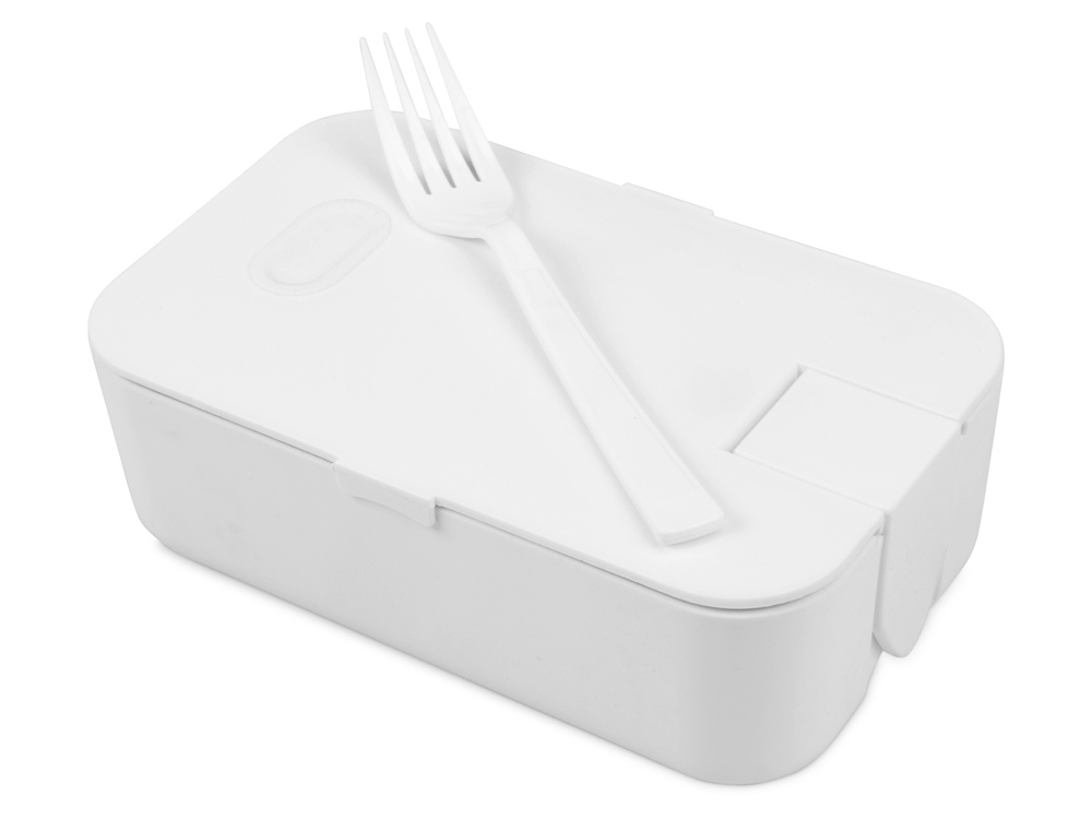 Ланч-бокс Neo можно брать с собой на работу, в школу, университет и командировки. Внутри прочной пластиковой емкости находятся снимаемая перегородка и вилка. Крышка с клапаном препятствует выпадению продуктов из бокса. Чтобы облегчить открытие контейнера, сначала выпустите воздух из него, потянув за силиконовый клапан на крышке. Деталь для фиксации крышки контейнера выполняет дополнительную функцию подставки для телефона, что особенно понравится тем, кто привык смотреть видео или читать книги во время перекуса. Ланч-бокс Neo можно разогревать в микроволновой печи, предварительно сняв крышку контейнера. Также разрешается использовать в посудомоечной машине и морозильной камере.