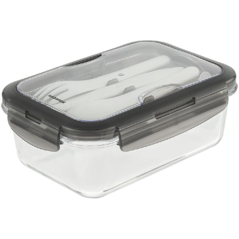 корпус - стекло, жаропрочное; крышка, приборы - пластик