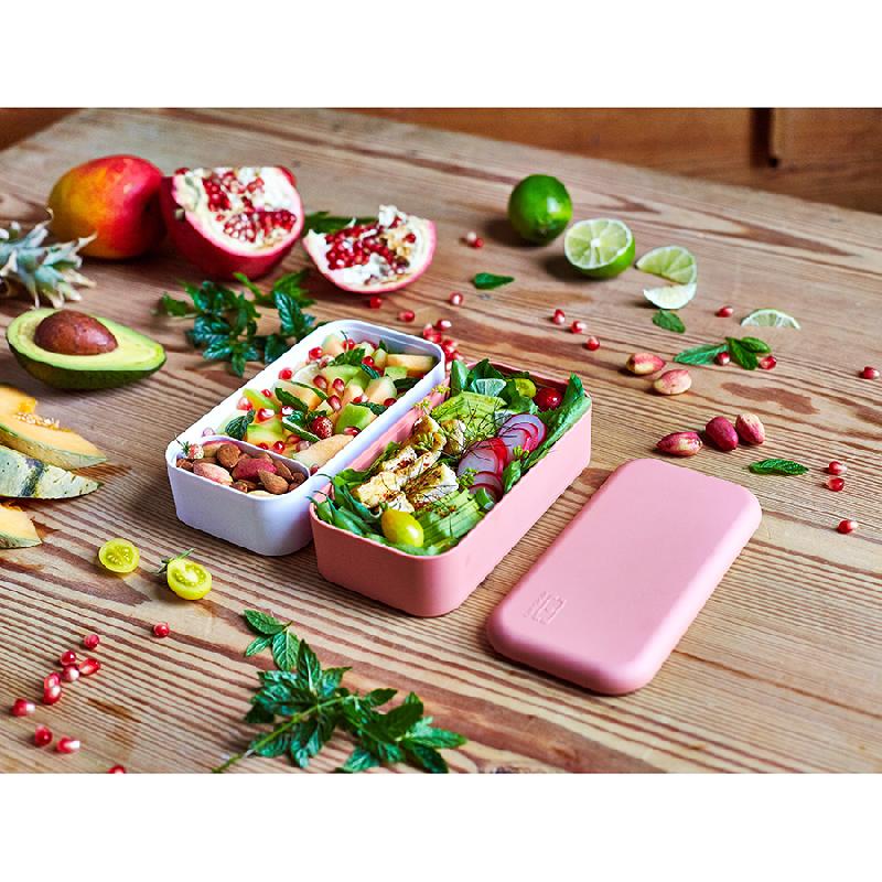 В современном мире здоровое питание — залог успеха. Ланч-боксы Monbento полностью сохраняют полезные свойства продуктов, герметичны и изготовлены из безопасного пищевого пластика. Удобный формат из 2 контейнеров по 500 мл не займет много места и обеспечит полноценный прием пищи. Контейнеры фиксируются друг над другом эластичным ремешком, а также их можно использовать по-отдельности. Ланч-бокс является герметичным, не деформируется при нагревании и включает прорезиненные элементы на каждой промежуточной крышке.