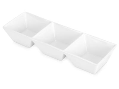 Менажница Snacks имеет три секции и выполнена из керамики. В ней можно красиво и удобно подавать закуски к столу, небольшой перекус, орехи, оливки, сладости. Также можно использовать этот предмет для подачи соусов.
