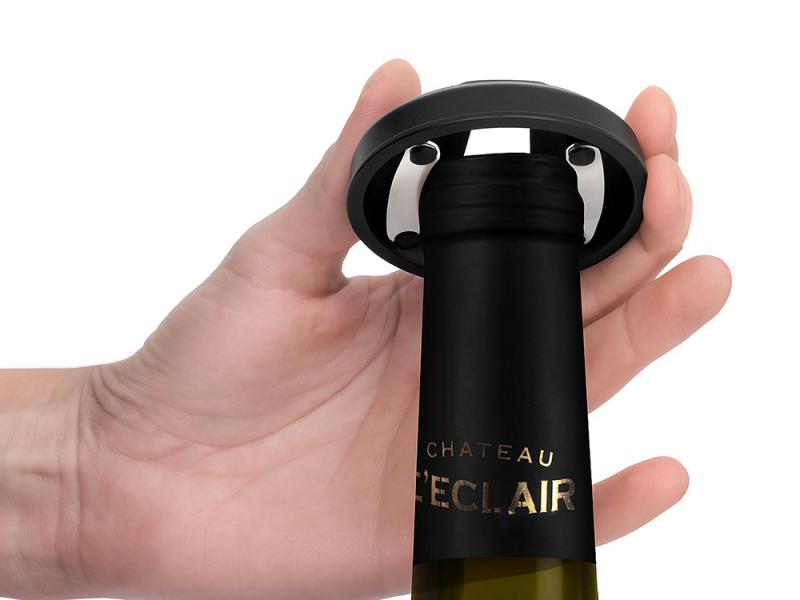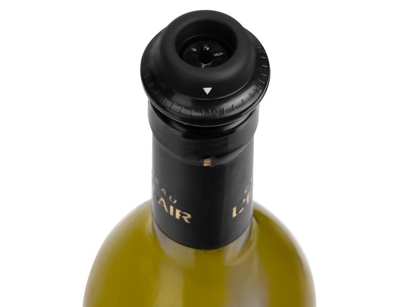 Сохраняет вино свежим до 7 дней. Достаточно надеть устройство с вакуумной пробкой на бутылку, и воздух будет удалён за секунды.