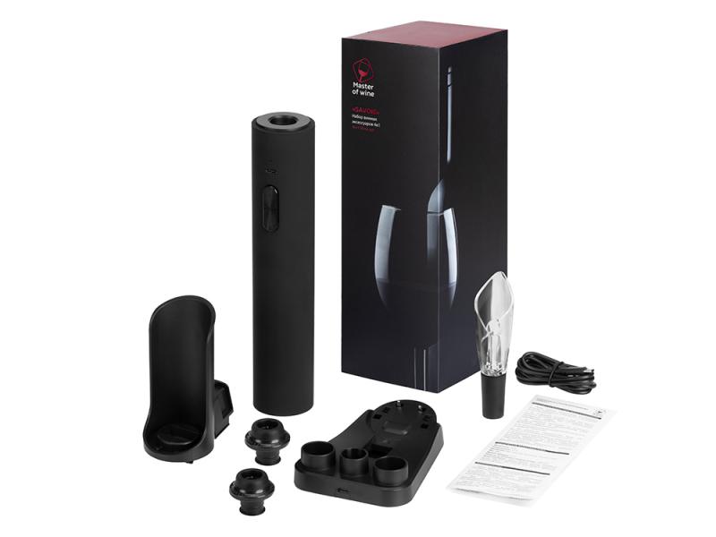 Этот стильный многофункциональный набор объединяет всё необходимое для истинных ценителей вина. Он позволяет легко открыть бутылку, насытить вино кислородом, сохранить его свежесть и хранить с комфортом.