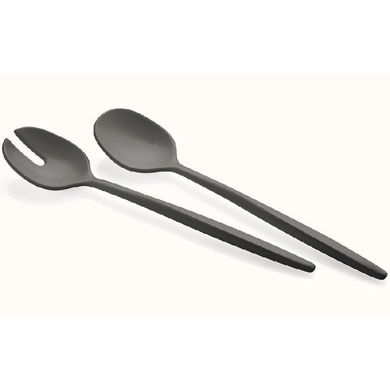 В набор входят глубокая ложка и ложка с прорезью для того, чтобы излишки салатной заправки (масла, уксуса и лимона) стекали вниз. Изделия выполнены из переработанного пластика PET. Материал не содержит вредных примесей и бисфенола-А.