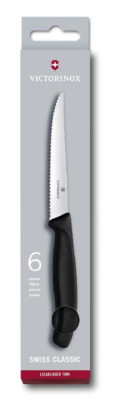 Набор из 6 ножей для стейков VICTORINOX SwissClassic, лезвия 11 см из нержавеющей стали с волнистой заточкой, рукоять из полипропилена чёрного цвета, в картонной коробке с подвесом