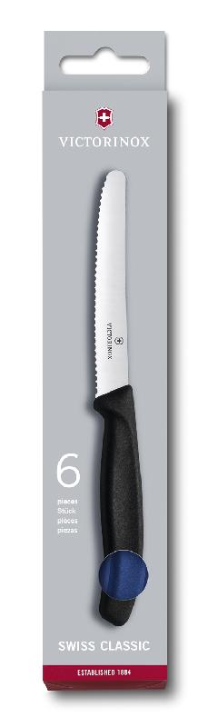 Набор из 6 столовых ножей VICTORINOX SwissClassic, лезвие из нержавеющей стали 11 см с волнистой заточкой, рукоять из полипропилена чёрного цвета, в картонной коробке с подвесом