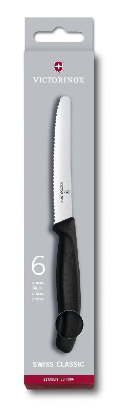 Набор из 6 столовых ножей VICTORINOX SwissClassic, лезвие из нержавеющей стали 11 см с волнистой заточкой, рукоять из полипропилена чёрного цвета, в картонной коробке с подвесом