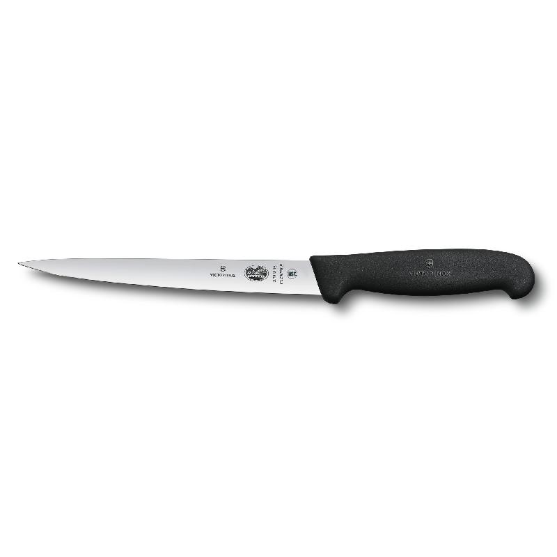 Нож филейный для рыбы VICTORINOX Fibrox с супер-гибким лезвием из нержавеющей стали 18 см и рукоятью из пластика чёрного цвета