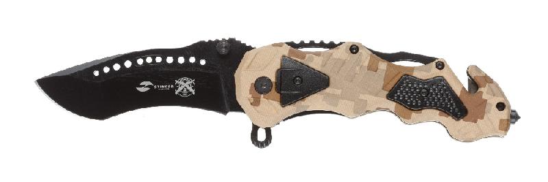 Нож складной Stinger, 100 мм, (чёрный), материал рукояти: алюминий (песочный камуфляж)